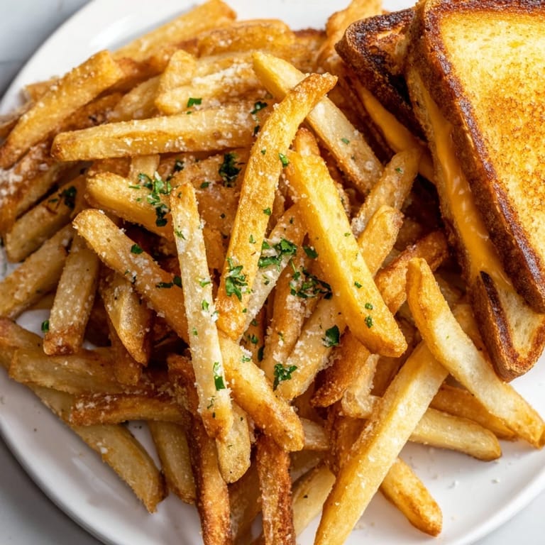 Pin It There's something about the combination of crispy, golden fries and a melty grilled cheese that stopped me in my tracks one rainy Tuesday afternoon. I was testing beef tallow for frying—something I'd been curious about for months—and the moment those fries hit the hot fat, the kitchen filled with this rich, savory aroma that made me realize I couldn't serve them alone. A grilled cheese seemed like the obvious answer, something warm and comforting to balance the luxurious crispness of the fries. What started as an experiment turned into the meal I now make whenever I want to feel genuinely taken care of.
