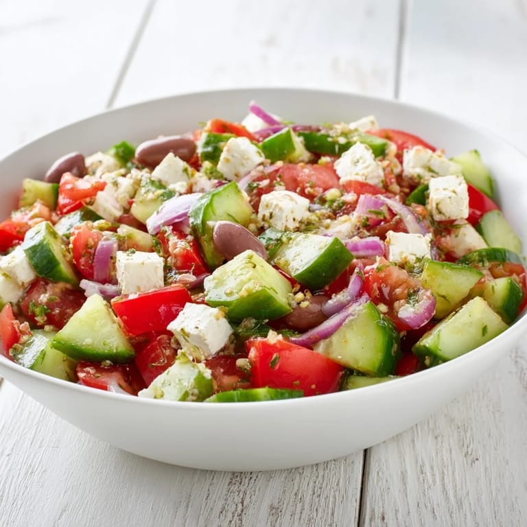 - Feta cheese: Crumble it with your fingers for uneven chunks that melt on your tongue, or skip it entirely and the salad still shines.