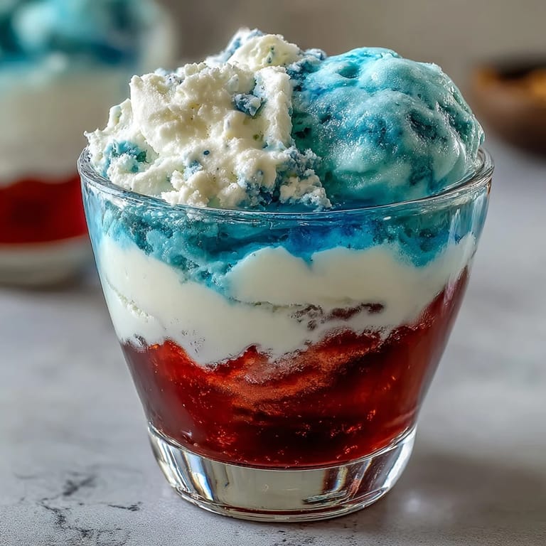 Pin It There's something magical about watching a room light up when you set down a tray of these red, white, and blue layered Jello cups. I learned to make them one Fourth of July when my neighbor challenged me to bring something that actually looked festive instead of store-bought, and I've been hooked ever since. The secret isn't complicated—it's all about patience and letting each layer sit just long enough to set properly. What makes them special is how the colors catch the light, creating these perfect stripes that feel almost too pretty to eat. Almost.